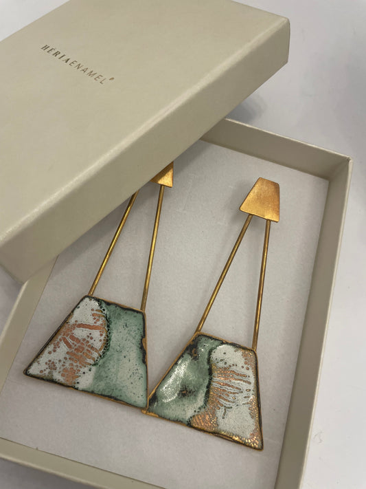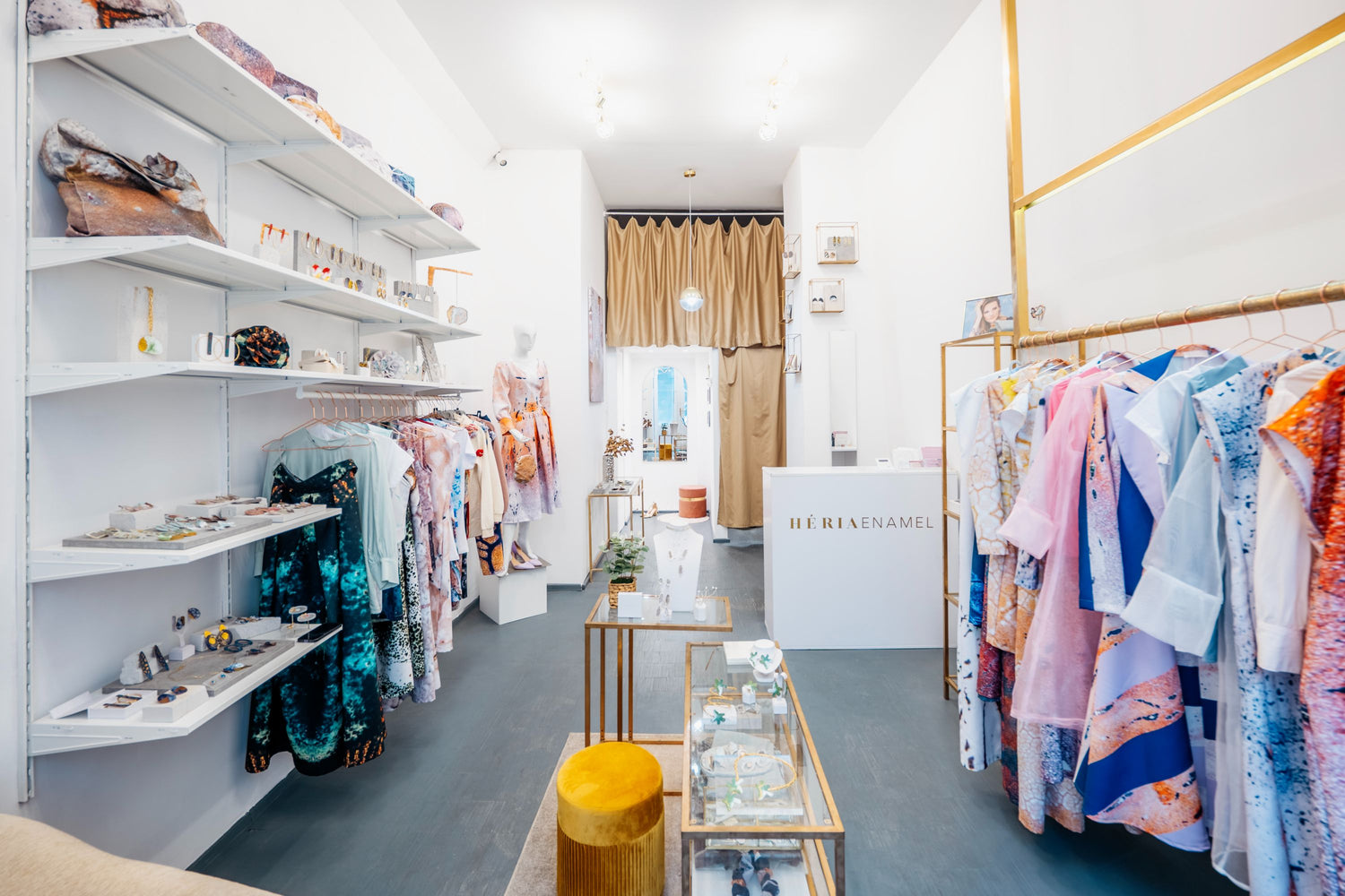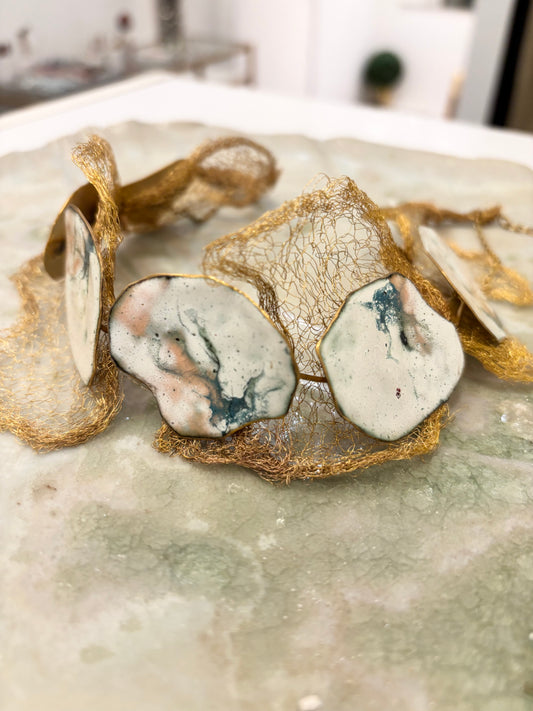 The Heria Enamel composition is worn by a determined, radiant and conscious woman who appreciates the unexpected and the unique. Choose from a selection of beautifully shaped jewellery made using traditional enamel techniques, as well as bags and clothing made with sustainability in mind!