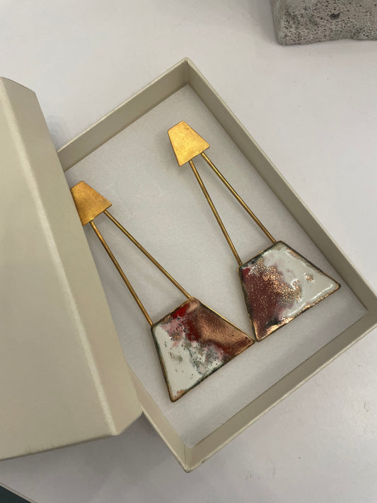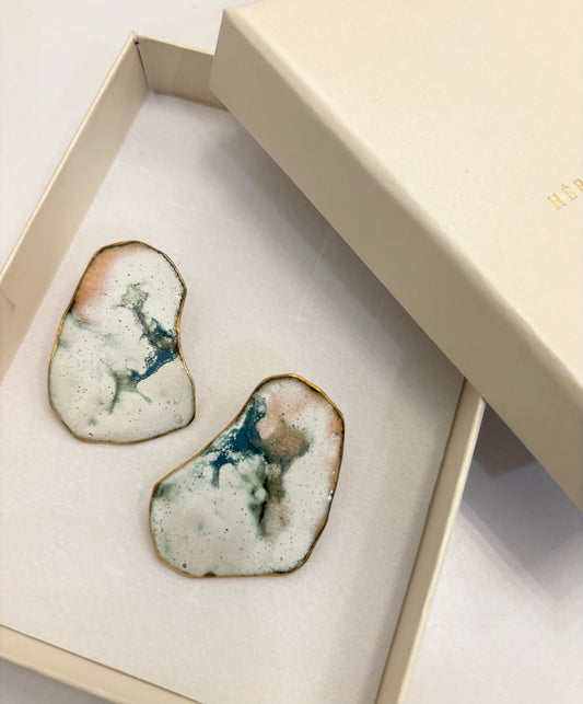 The Heria Enamel composition is worn by a determined, radiant and conscious woman who appreciates the unexpected and the unique. Choose from a selection of beautifully shaped jewellery made using traditional enamel techniques, as well as bags and clothing made with sustainability in mind!